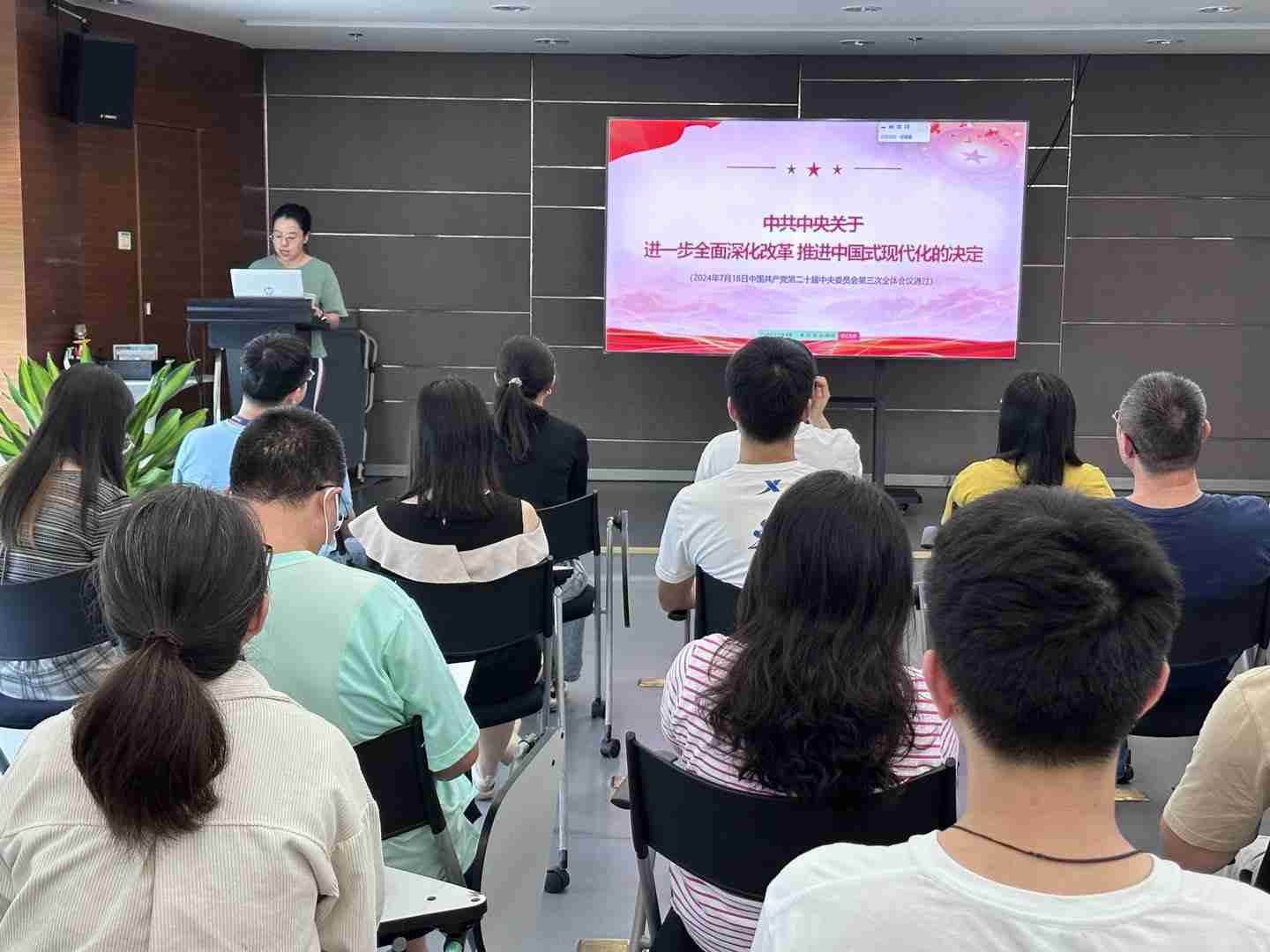 925日,,J9.COM党总支召开会议,,,,聚焦党的二十届三中全会审议通过的《中共中央关于进一步全面深化改革 推进中国式现代化的决定》(以下简称《决定》)原文,,,,专题学习全会精神,,,,进一步提高思想认识、、、、强化理论武装。。。。党总支全体党员、、、发展对象、、、入党积极分子参加会议。。