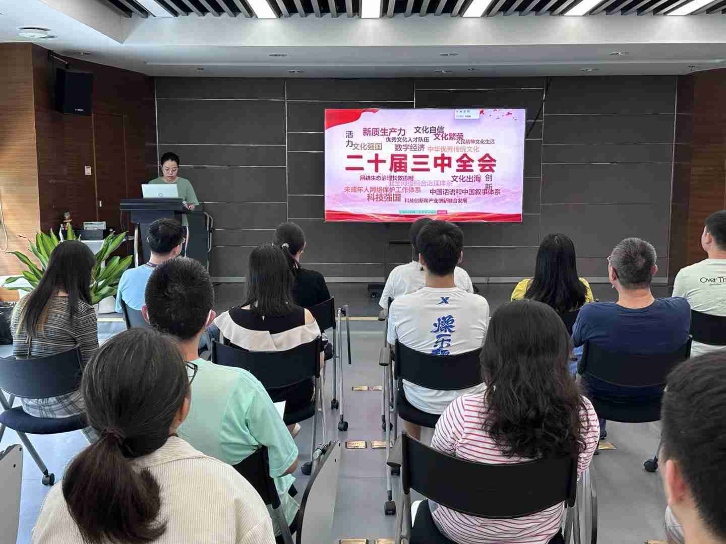 与会人员深入学习《决定》内容。。。党的二十届三中全会提出必须增强文化自信,,发展社会主义先进文化,,,弘扬革命文化,,传承中华优秀传统文化,,加快适应信息技术迅猛发展新形势,,,构建更有效力的国际传播体系,,,,这为广大文化产业工作者指明了奋斗方向。。。。