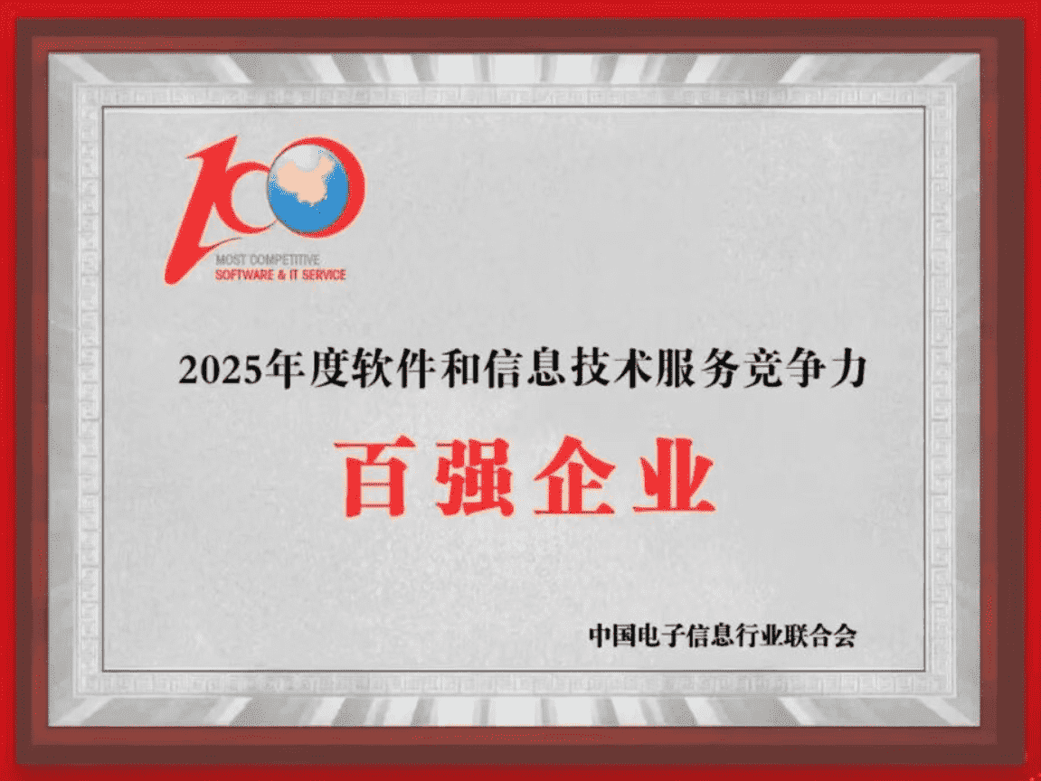 20251015日,,,中国电子信息行业联合会权威揭晓“2025年度软件和信息技术服务竞争力前百家企业名单。。。中国软件百强企业评选活动是由工业和信息化部全程指导、、中国电子信息行业联合会牵头组织发起,,,是反映中国软件产业发展最高水平的“风向标”。。。。厦门J9.COM网络技术股份有限公司(以下简称“J9.COM”或“公司”)凭借自身在软件技术领域的卓越表现与杰出创新能力,,,,第六次入选“全国软件和信息技术服务竞争力前百家企业”称号。。。